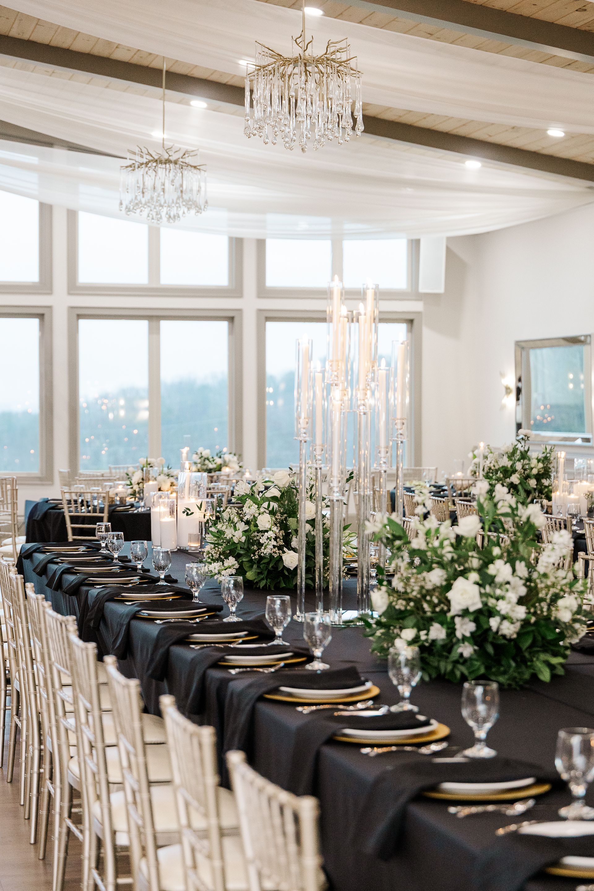 Venue in the Vines is perched within the lovely Blue Ridge Mountains, and overlooking fifteen picturesque acres of grapevines. As you enter the space you will be surrounded with refined modern luxury from start to finish. From each window, guests can gaze upon the vines positioned beautifully with sweeping mountain views as their backdrop.